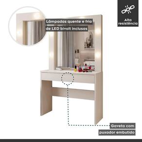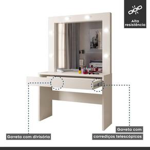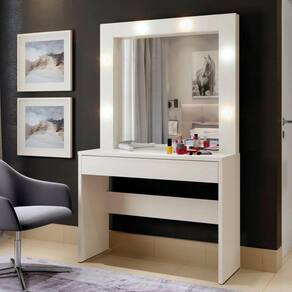 Conheça nossa extraordinária Penteadeira, seu espaço dedicado à beleza e elegante. Equipada com iluminação LED suspensa e um espelho amplo e nítido, proporciona uma experiência de maquiagem de alta qualidade. Seu design moderno e requintado complementa qualquer ambiente, tornando-se o destaque do seu quarto. Mime-se com a Penteadeira Camarim e diversão de momentos de beleza e glamour todos os dias. Acabamento da Gaveta: Pintura Acompanha Banqueta: Não Acompanha Lâmpada: 06 Altura do Espelho: 86,3 cm Ambiente Principal: Quarto Complexidade da Montagem: Alta: deve ser montado por um montador especializado Cor: Off White Cor do Produto: Off White Cor Interna: Off White Escala de Brilho: Fosco Escala de Brilho da Gaveta: Fosco Espessura do Espelho: 2,8 mm Espessura do Vidro: mm Fita Integrada: Sim Formato do Espelho: Retangular Gaveta com Chave: Não Itens Inclusos: 1 Camarin Requinte, 1 manual de montagem e kit ferragens Largura do Espelho: 78,8 cm Manual de Montagem e Instalação: https://cdn2.madeiramadeira.com.br/prd/mavaular/1810250-CAMARIM%20ROMANCE%20NEW.pdf Material da Gaveta: MDF Material Principal: MDF/MDP Medida da Moldura: 89cmx101,6cmx7,5cm Necessita Montagem: Sim Origem do Produto: Nacional Peso: 46 kg Peso Máximo por Gaveta: 5 kg Possui iluminação: Sim Possui Moldura: Sim Possui Pés: Não Possui Porta Objetos: Sim Possui Portas: Não Possui Prateleiras: Não Possui Vidro: Não Quantidade de Espelho: 01 Recomendações de Uso, Manutenção e Limpeza: Para limpeza utilizar apena pano úmido. Sapatas Niveladoras: Sim Sistema de Montagem: Parafusos Suporta Até (kg): 25 kg Tampo Basculante: Não Tipo de Corrediça da Gaveta: Metálica Telescópica Tipo de Fixação do Espelho: Fita Dupla Face Tipo de Lâmpada: LAMPADA 4,7W Tipo de Puxador da Gaveta: Embutido