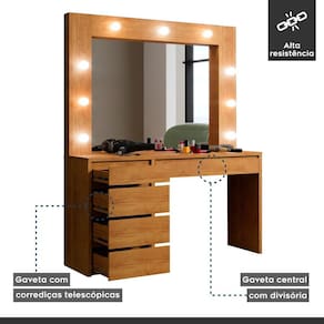 Conheça nossa extraordinária Penteadeira, seu espaço dedicado à beleza e elegante. Equipada com iluminação LED suspensa e um espelho amplo e nítido, proporciona uma experiência de maquiagem de alta qualidade. Seu design moderno e requintado complementa qualquer ambiente, tornando-se o destaque do seu quarto. Mime-se com a Penteadeira Camarim e diversão de momentos de beleza e glamour todos os dias.