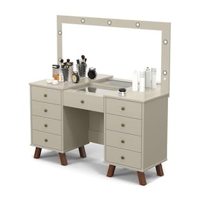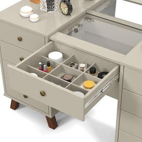 penteadeira camarim 9 gavetas retro c/led pes de madeira patrimar - Off White