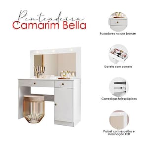 Penteadeira Camarim Ambiente Bella Branco Brilho - Moval