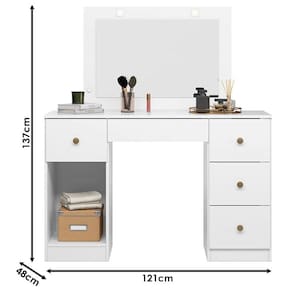 Começou a montar seu quarto? Então apresentamos para você esta bela penteadeira da linha Sonhos. Composto por uma porta e cinco gavetas espaçosas equipadas com corrediças telescópicas. O destaque é para a gaveta central com comeia para melhor organização. O painel com espelho e iluminação em LED garante uma ótima claridade, criando um verdadeiro ambiente de camarim em seu quarto. Fabricado pela Moval, é desenvolvido em MDP de alta qualidade, combinando beleza, praticidade e boa durabilidade. Transforme seu momento em uma experiência única, aproveite!