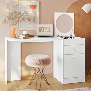A Penteadeira Camarim é perfeita para seus momentos de beleza efunciona também como escrivaninha.