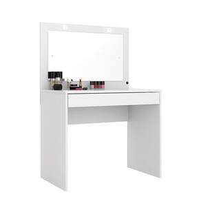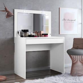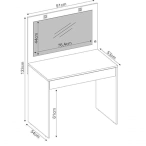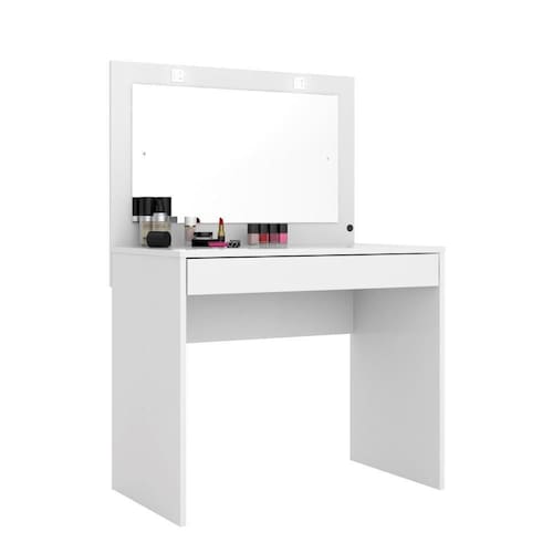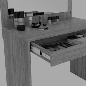 Móvel prático e adequado para pequenos espaços oferecendo um amplo espelho com iluminação em led para maquiagem, gaveta central com corrediças telescópicas e estrutura principal em chapa de 18mm.