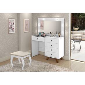 Penteadeira Camarim Com Espelho Banqueta Almofadada E Luzes Led Luna Branco