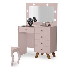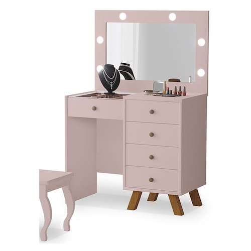 Penteadeira Camarim com Espelho e Led Luna Rosê Luapa