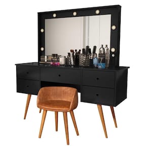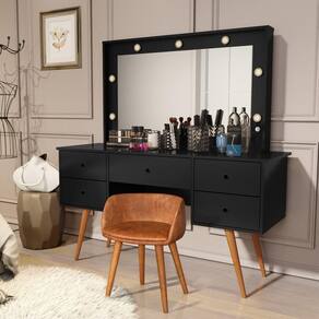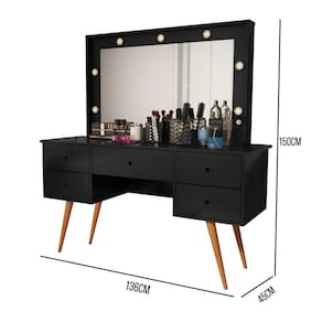Penteadeira Camarim Com Espelho Led 5 Gavetas Banqueta Inclusa Courino Pé Madeira Preto Penteadeira Camarim Bancada Maquiagem com Banqueta Courino CoresDesperte a sua vaidade e transforme o seu ritual de beleza com a Penteadeira Camarim com Banqueta em Courino. Esta peça deslumbrante combina funcionalidade e estilo para criar um espaço exclusivo dedicado à sua rotina de cuidados design elegante e contemporâneo da penteadeira é acentuado pelo espelho camarim, proporcionando uma visão completa para garantir que você esteja sempre impecável. As luzes embutidas ao redor do espelho proporcionam uma iluminação suave e perfeita para maquiagem e cuidados com a banqueta estofada em courino não apenas adiciona conforto, mas também complementa o visual sofisticado da penteadeira. O courino é fácil de limpar, garantindo pde no seu dia a amplos espaços de armazenamento, gavetas e nichos oferecem organização para seus produtos de beleza, joias e acessórios. Mantenha tudo à mão, facilitando o processo de preparaçã com materiais de alta qualidade, a Penteadeira Camarim com Banqueta em Courino é durável e resistente, garantindo que você desfrute de um espaço glamoroso por muitos anos. Torne o seu o de beleza ainda mais especial com esta penteadeira que une pde, estilo e funcionalidade. Transforme seu espaço e sinta-se como uma estrela todos os dias!MEDIDAS DO PRODUTO MONTADOS:Altura: 150 cm;Largura: 136 cm;Comnto: 45 cm.*NÃO NOS RESPONSABILIZAMOS PELA MONTAGEM DO PRODUTO, VISANDO POR UMA DURABILIDADE MAIOR DO PRODUTO, ACONSELHAMOS QUE A MONTAGEM SEJA FEITA POR UM .**OFERECEMOS 3 MESES DE GARANTIA DE * Marca: Não Informado