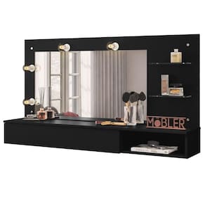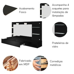 A Penteadeira com espelho Strass é perfeita para quem busca beleza, praticidade e sofisticação. Com um design exclusivo e acabamento em preto fosco UV, ela se destaca na decoração e transforma qualquer cantinho em um verdadeiro camarim iluminado basta instalar as lâmpadas nos soquetes já inclusos!