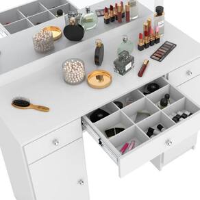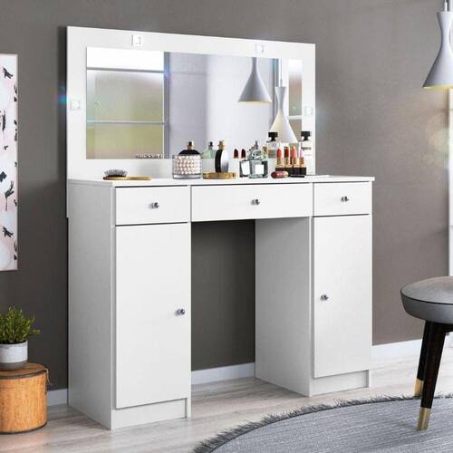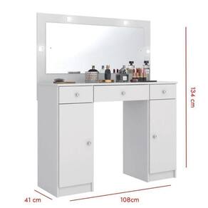Marca Demobile Modelo Carisma Material Principal MDP Tonalidade do Produto Branco Quantidade de Prateleiras 1 Prateleira Quantidade de Gavetas 3 Gavetas Quantidade de Portas 2 Portas Portas Giro Possui Espelho Sim Tipo de Pés Fixo Possui LED Sim Material do Puxadores Plástico Cromado Tipo de Dobradiça / Corrediça Dobradiça Metálica, Corrediça Metálica Eletrônicos Itens Incluso Manual de Montagem, Penteadeira, Organizador Modelo Colméia Necessita Montagem Sim Peso do Produto Unitário 37,20 kg Dimensão do Produto Unitário 108 x 134 x 41 kg Quantidade de Volume 2 Volumes Dimensão da Embalagem Unitário 1Vol: 40 x 13 x 110 cm | 2Vol: 73 x 5 x 115 cm Garantia do Fabricante 3 Meses
