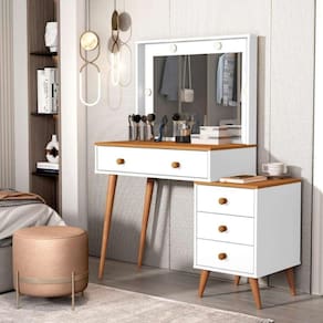 Penteadeira Camarim Com Mesa De Cabeceira Espelho Led 4 Gavetas Pés Em Madeira Branco / Nature Esta penteadeira escrivaninha é uma fusão perfeita de beleza e pde, criada para transformar seu espaço de beleza em um ambiente elegante e funcional. Combinando elementos de uma penteadeira clássica com uma escrivaninha moderna, esta peça é ideal para quem busca um versátil para se arrumar e trabalhar com um design versátil, esta penteadeira escrivaninha se adapta facilmente a diferentes estilos de decoração, adicionando um toque de sofisticação ao seu espaço. Sua estrutura funcional combina perfeitamente a pde de uma escrivaninha com a elegância de uma com um espelho LED integrado, esta penteadeira oferece uma iluminação suave e uniforme para facilitar a aplicação de maquiagem e cuidados com a pele. A iluminação ajustável permite criar diferentes ambientes de acordo com suas preferê gaveteiro espaçoso oferece amplo espaço de armazenamento para seus produtos de beleza, acessórios e itens pessoais. Com várias gavetas e compartimentos, você pode manter seu espaço de beleza organizado e livre de bagunça.Fabricada com materiais de alta qualidade, esta penteadeira escrivaninha é resistente e durável, garantindo sua beleza e Com um sistema de montagem simples e intuitivo, esta penteadeira escrivaninha pode ser facilmente montada em seu quarto. Além disso, sua manutenção é descomplicada, exigindo apenas cuidados básicos para preservar sua beleza e penteadeira escrivaninha com espelho LED e gaveteiro é a escolha ideal para quem busca uma solução prática e elegante para seu espaço de beleza e trabalho. Com sua combinação de design versátil, iluminação LED integrada, armazenamento organizado e qualidade superior, ela proporciona conforto e estilo, tornando seu ambiente um verdadeiro refúgio de beleza e produtividade.MEDIDAS DO PRODUTO:Altura: 144,5 cm;Largura: 114 cm;Profundidade: 45 cm.- Os itens decorativos que compõem a imagem NÃO acompanham o produto.- Garantia de 3 meses contra s de fabricação.- Aproveite nossas condições especiais de pagamento e .- Somos especialistas em produtos PREMIUM! Para que você nosso cliente, tenha produtos de altíssima qualidade pelo MENOR PREÇO!- PARA !- ATENÇÃO: POUCAS UNIDADES EM ESTOQUE, COMPRE AGORA E GARANTA O MELHOR PREÇO. POR TEMPO LIMITADO!!- Nossos produtos que necessitam de montagem acompanham manual.- NÃO NOS RESPONSABILIZAMOS PELA MONTAGEM DO MÓVEL, EMBORA SEJA SIMPLES, ACONSELHAMOS QUE SEJA FEITO POR UM . Marca: Não Informado