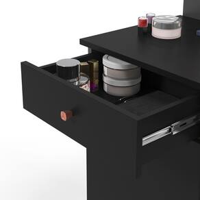 Foi pensada para deixar aquele cantinho ainda mais especial e organizado. Com 2 gavetas com puxadores metal, amplo espelho e kit com soquetes para lâmpadas, ela acomoda diversos tipos de maquiagens, pincéis e tudo mais para aquela produção. Seu design moderno garantem o charme que faltava ao seu quarto.