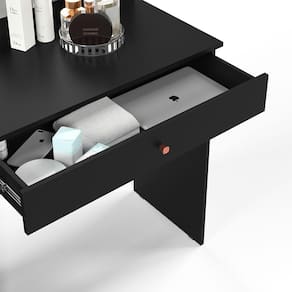 Foi pensada para deixar aquele cantinho ainda mais especial e organizado. Com 2 gavetas com puxadores metal, amplo espelho e kit com soquetes para lâmpadas, ela acomoda diversos tipos de maquiagens, pincéis e tudo mais para aquela produção. Seu design moderno garantem o charme que faltava ao seu quarto.