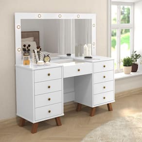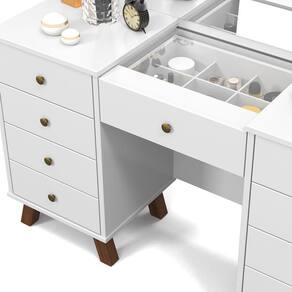 penteadeira camarim eloa 9 gavetas led e espelho pes de madeira premium - Branco