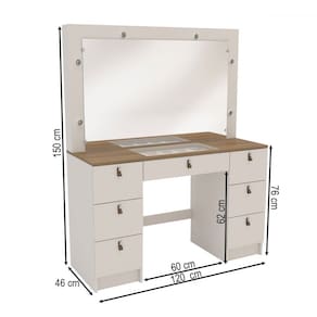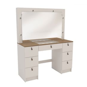 O(a) Penteadeira Camarim França 7 Gavetas com Vidro Off White/Freijó - Politorno é produzido em MDP na escala de brilho Semi-Fosco, e possui um grau de dificuldade de montagem: Médio.