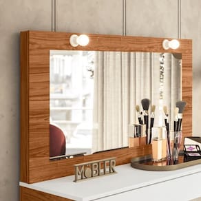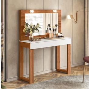 A Penteadeira Camarim Gala da Mobler é a combinação perfeita de compactação e elegância. Com espelho e gaveta com divisórias internas, ela traz beleza e facilidade de organização para o seu espaç estrutura é feita em MDP, garantindo resistência, e o espelho complementa a funcionalidade do móvel. Inclui também um kit com 2 soquetes para personalizar a iluminação (lâmpadas não inclusas), além de 1 gaveta com corrediças telescópicas e 2 divisórias internas para uma organização impecável. Com pés estáveis de 25mm, a penteadeira suporta até 20 kg e é ideal para criar um ambiente charmoso, repleto de beleza e praticidade.