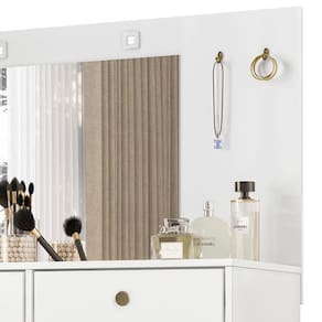 A Penteadeira Camarim Ideal é a solução perfeita para quem busca um design compacto que combine modernidade e aconchego no ambiente. Com um espelho de alta qualidade e spots de LED, ela oferece a iluminação ideal para suas atividades diárias. As 2 gavetas proporcionam espaço suficiente para guardar seus itens essenciais, enquanto o gancho para acessórios garante que tudo esteja sempre ao seu alcance. Além de funcional, a Penteadeira Camarim Ideal foi pensada para quem aprecia um ambiente organizado e com bom gosto. Seu design elegante complementa qualquer decoração, tornando seu espaço ainda mais sofisticado. Seja para se maquiar, se arrumar ou simplesmente organizar seus pertences, essa penteadeira é a escolha certa para elevar o estilo do seu ambiente.