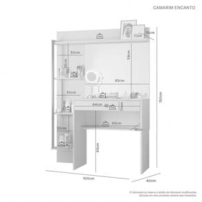 - Medidas produto montado: 150 (A) x 100 (L) x 40 (P) cm;