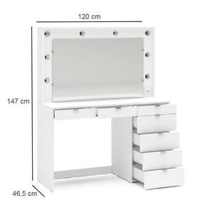 Características: Estrutura MDP Pintura UV 08 Gavetas com corrediças metálicas Suporte para 08 lâmpadas Puxadores de Metal Peso suportado no Tampo: 15kg Peso suportado por Gaveta: 3kg Não acompanha lâmpadas Compatível com lâmpadas bulbo LED modelo E27, de 3W a 6W de potência