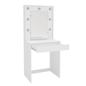 Características: Estrutura MDP Pintura UV 01 Gaveta com corrediças metálicas Suporte para 07 lâmpadas Peso suportado no Tampo: 15kg Peso suportado na Gaveta: 3kg NÃO ACOMPANHA LÂMPADAS Compatível com lâmpadas bulbo LED modelo E27, de 3W a 6W de potência