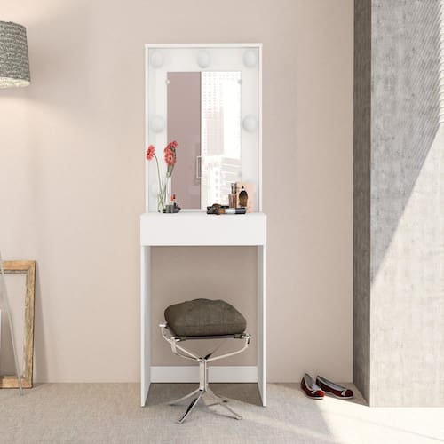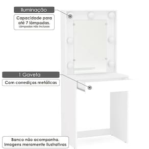 Penteadeira Camarim Lavínia c/ 7 Pontos de Luz e Gaveta- Branco