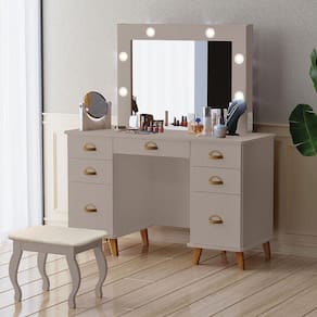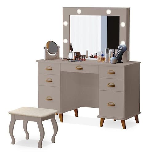 Penteadeira Camarim New Seul com Banqueta Almofadada Mani Luapa Móveis