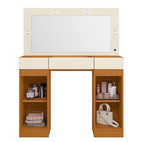 Penteadeira Camarim Porta Joias 3 Gavetas 2 Portas Princess Cinamomo/off White Na hora de se arrumar é importante ter um espaço dedicado só para isso e a Penteadeira Camarim Princess é o produto perfeito para essas horas! Com amplo espaço de armazenamento em suas 2 portas de bater e 3 gavetas com corrediças telescópicas, sendo a central um porta joias com divisórias em colmeia, espelho com amplo espaço e luminárias led que passa a vibe de um camarim de uma estrela! Um móvel incrível para o seu quarto feito com os melhores materiais do mercado! Aproveite esse e muitos outros produtos incríveis com preços acessíveis da Casa Chick! Dimensões da Penteadeira Camarim Princess: - Altura: 133 cm - Largura: 105 cm - Profundidade: 40 cm