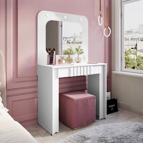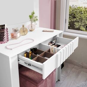 O(a) Penteadeira Camarim Rouge 1 Gaveta Branco - Móveis Bechara é produzido em MDP na escala de brilho Brilho, e possui um grau de dificuldade de montagem: Médio.