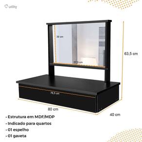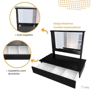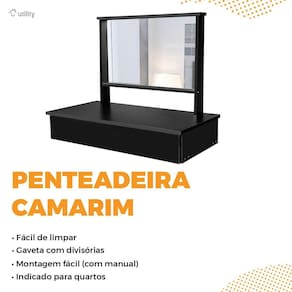 Benefícios: - A Penteadeira Camarim Utility é fabricada em MDF/MDP, acabamento em fórmica, característica que garante mais durabilidade e resistência ao produto, com design moderno ela é muito funcional, conta com 01 gaveta com 03 repartições para organizar melhor. - Organiza o ambiente
