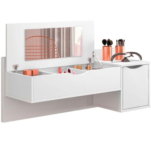 Penteadeira Camarim Suspensa com Espelho e Nichos Make