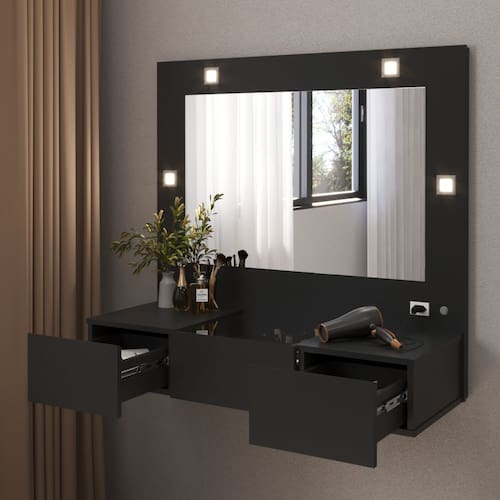 Penteadeira Camarim Suspensa Sofia Preto Acetinado - Rede Móveis
