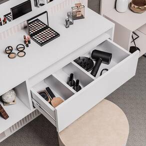 Compacta, moderna e funcional a Penteadeira Camarim Eva é um produto com o toque de delicadeza que faltava no seu cantinho, para organizar e facilitar seu dia a dia mantendo tudo sempre bem arrumadinho! Com detalhes que encantam. Dimensões do Bancada Suspensa: Altura: 23,5 cm Largura: 90 cm Profundidade: 32 cm Largura do Nicho: 26,5 cm Peso Total: 16 kg Dimensões do Suporte com Espelho: Altura: 35 cm Largura: 90 cm Dimensões do Espelho: 25 x 57 cm Especificações do Produto: Estrutura: MDP Acabamento: Pintura BP Peso Suportado: 20 Kg distribuídos Possui Nicho: Sim Possui Espelho: Sim Possui Portas: Sim Quantidade de Portas: 1 Porta Possui Prateleiras: Não Tipo da Penteadeira: Suspensa Possui Pés: Não Diferenciais: Design moderno Manual de Montagem: Sim Complexidade da Montagem: Média Montagem: Recomendamos que seja feita por um profissional Garantia: 90 dias contra defeito de fabricação Instruções de Limpeza: Utilizar um pano limpo e levemente úmido Você irá Receber: 01 Penteadeira Camarim Entregue em: 01 Volume