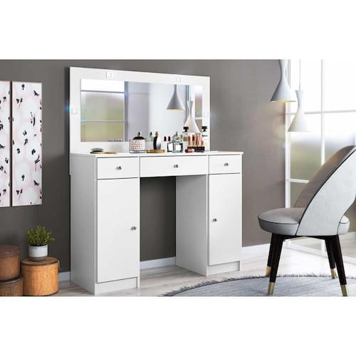 Penteadeira Carisma 2 Portas e 3 Gavetas c/ Espelho Branco - Demóbile