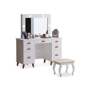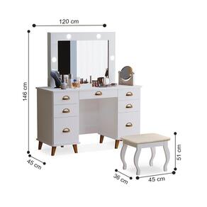 Essa Penteadeira conta com um design clássico, mas ainda assim moderno, somando na decoração de seu quarto ou closet, com bastante espaço para organização pessoal. Conta com um espelho com quadro iluminado por LED, gavetas laterais e uma gaveta central.
