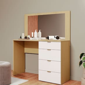 Penteadeira com Espelho 4 Gavetas Lis Moveis Sul A Penteadeira Lis e ideal para quem busca praticidade e elegancia no quarto. Produzida em 100 MDP com acabamento em pintura UV, garante maior durabilidade e resistencia. O movel conta com espelho amplo, 4 gavetas com corredicas telescopicas que proporcionam abertura suave e silenciosa, alem de puxadores plasticos que completam o design moderno.