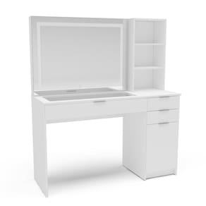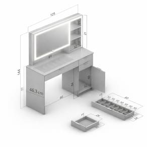 A Penteadeira com LED Bella Politorno é a escolha perfeita para quem busca praticidade, elegância e uma experiência completa de autocuidado no dia a dia. Com tampo de vidro sofisticado, LED embutido no espelho que garante iluminação ideal para maquiagem e cuidados com a pele, ela oferece uma gaveta com organizador de joias que mantém tudo visível e protegido, além de corrediças telescópicas que proporcionam abertura suave e silenciosa. Os nichos são ideais para organizar perfumes e produtos de skin care, deixando tudo sempre à mão, enquanto o acabamento em pintura UV confere maior durabilidade, brilho uniforme e fácil limpeza. Funcional, moderna e elegante, ela transforma sua rotina em um verdadeiro momento de bem-estar. Acabamento da Gaveta: Pintura UV Acabamento da Porta: Pintura UV Acompanha Banqueta: Não Acompanha Lâmpada: 01 Altura do Espelho: 67 cm Ambiente Principal: Quarto codigo_ean: 7900288310330 Complexidade da Montagem: Média: pode ser montado por mais de uma pessoa e/ou necessite de maior conhecimento para montagem Cor: Branco Cor do Produto: Branco Cor Interna: Branco Escala de Brilho: Semi-Fosco Escala de Brilho da Gaveta: Semi-Fosco Escala de Brilho da Porta: Semi-Fosco Espessura do Espelho: 3 mm Espessura do Vidro: 3 mm Formato do Espelho: Retangular Gaveta com Chave: Não Itens Inclusos: 1 Penteadeira, Kit Ferragens, Manual de Montagem e Termo de Garantia Largura do Espelho: 90 cm Linha ou Coleção: Bella Manual de Especificação Técnica: https://product-hub-prd.madeiramadeira.com.br/830714122/documents/f3a2a8ba-2f34-4fdb-a380-0bb2b6d453203356861622417684823609526.pdf Manual de Montagem e Instalação: https://product-hub-prd.madeiramadeira.com.br/830714122/documents/a9768391-3cf9-4448-93b6-0877bed2cdc53356860622417684823584079.pdf Marca: Politorno Material da Gaveta: MDP Material da Porta: MDP Material do Puxador da Gaveta: Metal Material Principal: MDP Necessita Montagem: Sim Origem do Produto: Nacional Peso: 38,68 kg Peso Máximo por Gaveta: 5 kg Possui iluminação: Sim Possui Pés: Não Possui Porta Objetos: Sim Possui Portas: 01 Possui Prateleiras: Não Possui Vidro: Sim Quantidade de Espelho: 01 Recomendações de Uso, Manutenção e Limpeza: Utilize um pano macio umedecido com água e sabão neutro, seguido de pano seco. Não utilize produtos químicos ou abrasivos para limpeza, pois estes danificam o revestimento do móvel. Sapatas Niveladoras: Sim Sistema de Montagem: Cavilha, Parafuso, Minifix e prego. Suporta Até (kg): 30 kg Tipo de Corrediça da Gaveta: Metálica Telescópica Tipo de Dobradiça/Corrediça da Porta: Metálica Tipo de Fixação do Espelho: Parafusos Tipo de Lâmpada: LED Tipo de Porta: Bater Tipo de Puxador da Gaveta: Externo Tipo de Puxador da Porta: Externo Marca: Não Informado