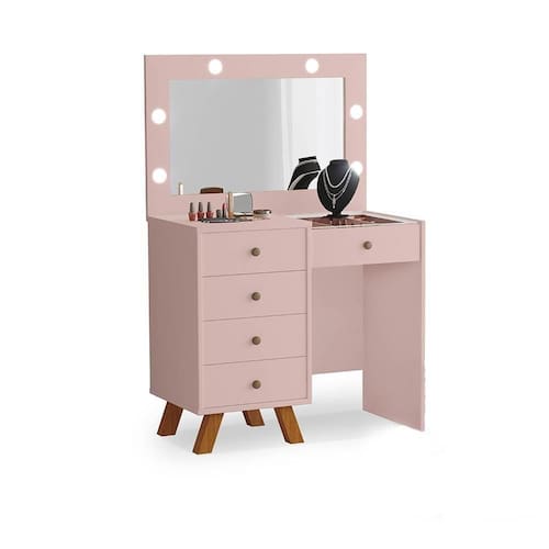 Requer montagem: Sim | Inclui manual de montagem: Sim | Quantidade de caixas de embalagem: 4 | Comprimento: 45 | Profundidade: 45 | Altura: 145 | Largura: | PESO PRODUTO COM EMBALAGEM (KG): 44 | PESO DO PRODUTO (KG): 44 | CUIDADOS: Limpar com pano macio e seco, não utilizar produtos abrasivos. | MATERIAL PARA FILTRO: mdf | POSSUI ILUMINAÇÃO: sim | MATERIAL PRINCIPAL: mdf | CORES DO PRODUTO (FILTRO DE CORES): rosa | CONTEÚDO DA EMBALAGEM: 1 penteadeira | ALTURA DO PRODUTO COM EMBALAGEM (CM): | POSSUI BANQUETA: não | LARGURA DO PRODUTO (CM): | COR PREDOMINANTE: rosê | COMPRIMENTO DO PRODUTO (CM): 45 | PRODUTO PRECISA DE MONTAGEM?: Sim, a montagem é simples mas sugerimos a contratação do nosso de montagem (para os CEPs em que o está disponível) ou de algum experiente de sua preferência | PRODUTO: penteadeira | LARGURA PRODUTO COM EMBALAGEM (CM): | ALTURA DO PRODUTO (CM): 145 | ESTADO DE ORIGEM: sp | DESCRIÇÃO DO TAMANHO: 145 x x 45 cm | MARCA: luapa | COMPRIMENTO PRODUTO COM EMBALAGEM (CM): 93 | POSSUI GAVETAS: sim, 5