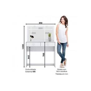 Penteadeira Daila c/ 2 Gavetas e Espelho Branco - Henn