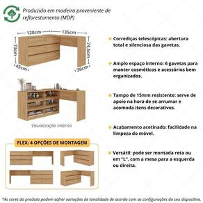 Penteadeira De Canto 120cm 6 Gavetas Multimóveis Mp4404 Madeirado