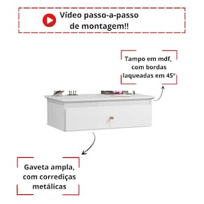 Especificações: - Produzido em MDP/MDF de 15 mm - Corrediças metálicas - 1 Gaveta - Pintura UV - Vídeo de montagem