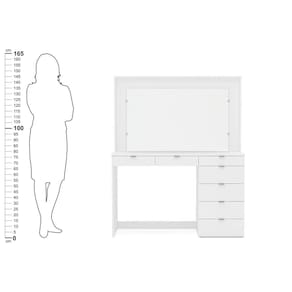 Sinta-se como uma estrela de cinema! A espetacular Penteadeira Ditália traz um estilo limpo e moderno para o seu quarto. Fabricada em madeira MDP UV com bordas melamínicas brancas, a penteadeira possui 7 gavetas onde você pode guardar tudo o que precisa para o seu dia a dia. De joias a documentos, seu ambiente ficará muito mais organizado e lindo. A base superior da mesa é ideal para guardar lembranças e recordações, trabalhar no seu notebook e divertir-se muito no espelho. Sinta-se em um camarim!