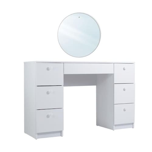 Com sete gavetas espaçosas, essa penteadeira oferece o espaço perfeito para armazenar todos os seus itens do dia a dia, desde joias preciosas até documentos importantes. Dessa forma, é possível manter seu ambiente impecavelmente organizado e deslumbrante.