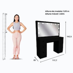 Produto: Penteadeira | Tipo: modular | Cor: Preto | Material para filtro: MDP | Estado de origem: RS | Altura do produto: 142 | Peso do produto: 48,20 Kg | Comprimento do produto: 39 cm | Largura do produto: 118 cm | Tonalidade: Preto | Altura do Produto Com Embalagem: 13 | Comprimento do Produto Com Embalagem: 130 | Largura do Produto Com Embalagem: 77 | Peso do Produto Com Embalagem: 46 | Produto precisa de Montagem?: sim | Instruções/Cuidados: A Limpeza deve ser feita com um pano levemente umedecido com água. Não utilizar produtos abrasivos | Conteúdo da Embalagem: Penteadeira Ditália 7 Gavetas PE-80 Preto Com Kit Luz Camarim | Descrição do Tamanho: 117,7 x 142,5 x 39,2 | Garantia em Meses: 3 | Nome do Simples no Fornecedor: Ditalia | Conteúdo do Produto: Penteadeira