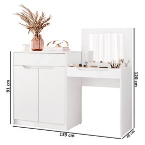 Penteadeira Escrivaninha com Espelho 2 Portas 1 Gaveta Bent A02 Branco Fosco - Mpozenato
