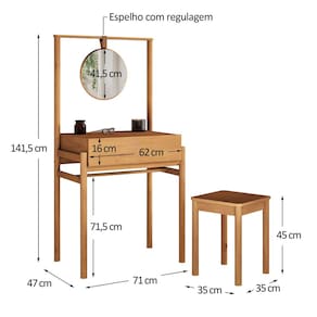 Penteadeira: Largura: 71 cm | Altura: 141 cm | Profundidade: 46 cm | Peso: 17 Kg