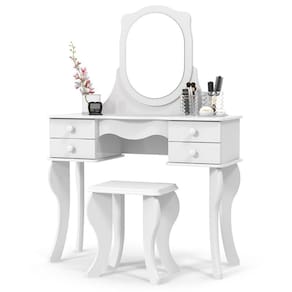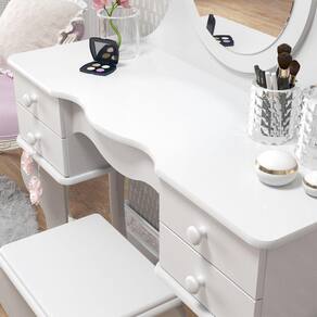 penteadeira estilo retro infantil branca 4 gavetas espelho + banco - Branco