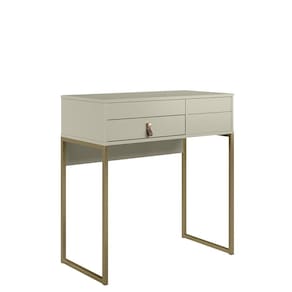 A Penteadeira Industrial é um produto com um design inovador, com as laterais em metal na "cor" ouro envelhecido, espelho no tampo e pistão a gás, sua estrutura é em MDP e MDF de 15 mm. Possui uma colmeia para você rechear com maquiagens, acessórios e produtos para beleza, uma gaveta com corrediça telescópica e mais um compartimento para colocar produtos mais altos. Seu puxador possui um design com características de couro natural. É um produto com design de uma pegada industrial para quem gosta do estilo mais urbano e contemporâneo, onde você personaliza seu ambiente com exclusividade.