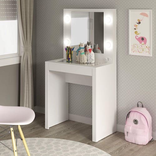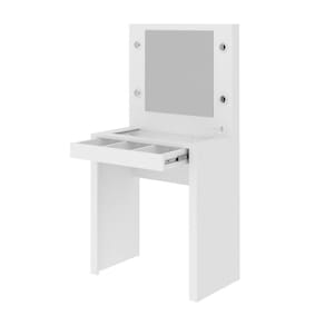 A preocupação com a sustentabilidade é um tema cada vez mais importante. Pensando nisso e no compromisso com a casa, a Penteadeira Aurora tem um apelo todo especial no que se refere à organização. Desenvolvida 100% ecologicamente correta, o que garante a resistência e vitalidade do móvel, promove no ambiente uma melhor organização dos objetos de forma rápida, simples e prática. Penteadeira Aurora, possui tampo com vidro, 3 compartimentos para porta maquiagem e/ou joias, 1 gaveta, kit elétrico para lâmpadas, as lâmpadas são por conta do consumidor, material em MDP, acabamento em pintura UV semi-brilho. Imagem meramente ilustrativa. A decoração do ambiente não acompanha o produto, produto é entregue desmontado, novo, acompanha nota, manual de montagem e ferragem. Acabamento da Gaveta: Pintura UV Acabamento dos Pés: Polipropileno Acompanha Banqueta: Não Altura do Espelho: 67 Altura dos Pés: cm Ambiente Principal: Quarto Infantil Complexidade da Montagem: Baixa: pode ser montado por uma pessoa sozinha Cor: Branco Cor do Produto: Branco Cor Interna: Branco Escala de Brilho: Semi-Brilho Escala de Brilho da Gaveta: Semi-Brilho Espessura do Espelho: 3 Fita Integrada: Sim Formato do Espelho: Quadrado Gaveta com Chave: Não Itens Inclusos: 1 Penteadeira e Manual de Montagem Largura do Espelho: 60 Linha ou Coleção: Penteadeira Manual de Montagem e Instalação: https://product-hub-prd.madeiramadeira.com.br/883901/documents/eeb88039-665b-45d4-835d-77d628650f371705340pe2017.pdf Material da Gaveta: MDP Material dos Pés: PVC Material Principal: MDP modular: Não Necessita Montagem: Sim Origem do Produto: Nacional Pés Reguláveis: Não Peso: 19.95 Peso Máximo por Gaveta: 3 Possui iluminação: Não Possui Moldura: Não Possui Pés: Não Possui Porta Objetos: Sim Possui Portas: Não Possui Prateleiras: Não Possui Rodízio: Não Possui Vidro: Não Quantidade de Espelho: 01 Recomendações de Uso, Manutenção e Limpeza: Utilizar somente pano úmido e sabão neutro. Sapatas Niveladoras: Sim Sistema de Montagem: Montar o móvel deitado de costas. Forrar o chão com o papelão das embalagens, aconselhamos a ser feita por um profissional, não expor o móvel a fontes de calor ou de umidade. Suporta Até (kg): 3 Tipo de Corrediça da Gaveta: Metálica Simples Tipo de Fixação do Espelho: Fita Dupla Face Tipo de Puxador da Gaveta: Não Possui - Abertura por Fecho Toque