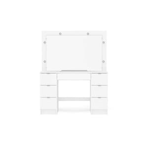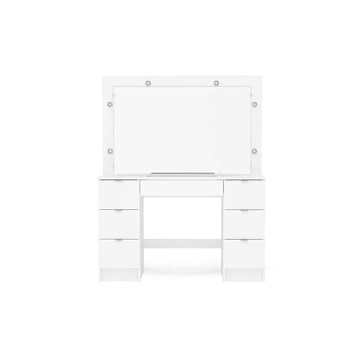 Penteadeira França c/ 6 Gavetas e Espelho Branco - Politorno