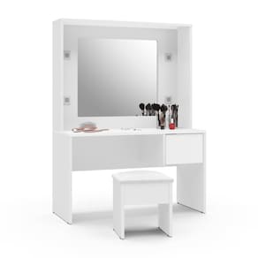 A Penteadeira Infantil Helena com Led e Banqueta Branca é ideal para as pequenas que adoram se arrumar. Odesign encantador e a luz LED criam um ambiente mágico e divertido, enquanto a banqueta oferece conforto durante os momentos de brincadeira.