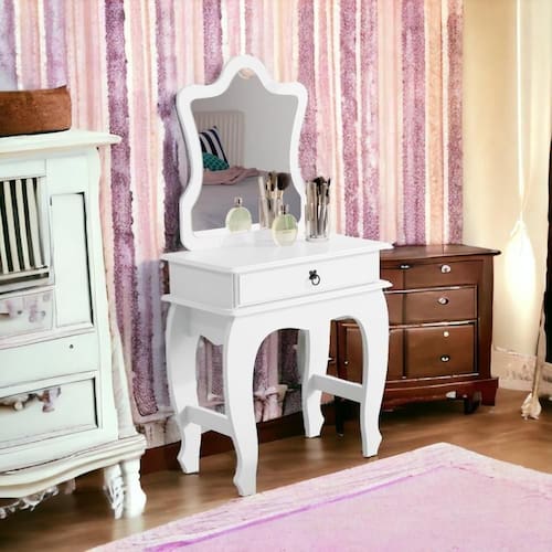 Transforme seu ritual diário em um momento de luxo com nossa elegante penteadeira. Com um design sofisticado e espelho amplo, esta peça é o cenário perfeito para realçar sua beleza!