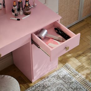 Disponível nas cores Branco e Rosa, a Jolie se adapta a diferentes estilos de decoração: o branco traz um visual leve e sofisticado, enquanto o rosa adiciona um toque romântico e acolhedor ao ambiente. Uma peça que une beleza e funcionalidade para valorizar ainda mais o seu quarto.